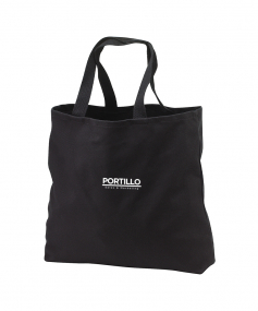 10 Oz., 100% cotton twill with cotton web handles. Approx. 588 cubic inches. Complies with Prop 65. 14" W x 14" H x 3" D